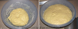 Framantam vreo 10 minute, apoi formam o bila din aluat, il acoperim si il lasam la crescut, la temperatura camerei, in jur de o ora - o ora si jumatate.
